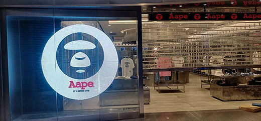 Aape是香港I.T集團的知名日系街頭潮牌,智彩科技為廣州天環廣場Aape門店量身定制透明led顯示屏。
